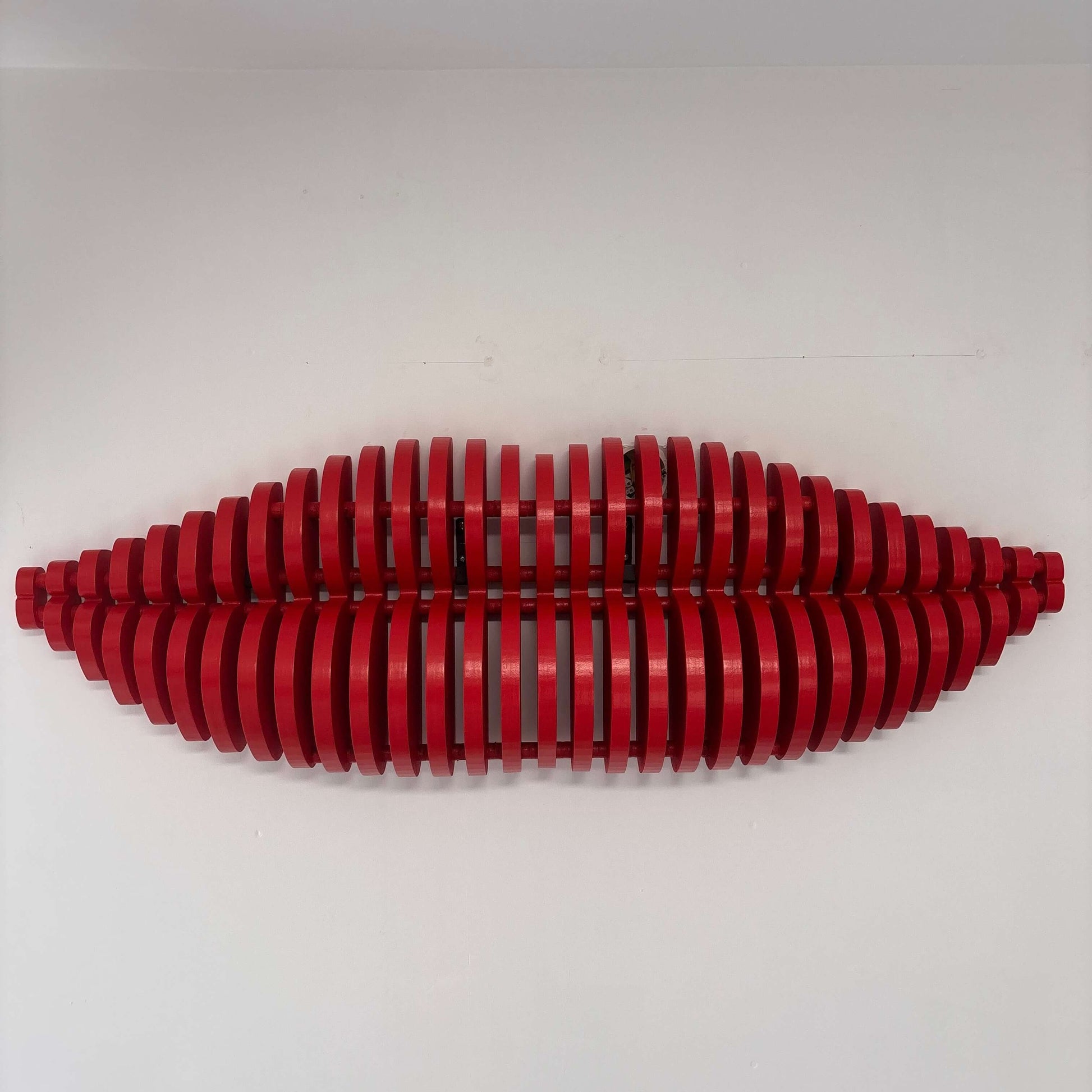 Apportez une dimension originale à votre intérieur avec cette œuvre murale représentant une bouche réalisée entièrement en bois, découpée en fines lamelles superposées. Sa construction en relief donne vie à une forme organique à la fois sensuelle et dynamique, jouant avec la lumière et les ombres selon l’angle de vue.